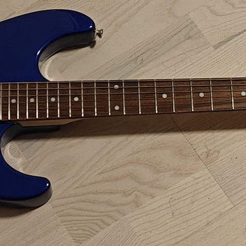 Virkelig pæn og velholdt stratocaster, med standardmål, så man kan bygge videre på den, hvis man synes. Alt er originalt, fra starten af 00'erne, angiveligt '04.
