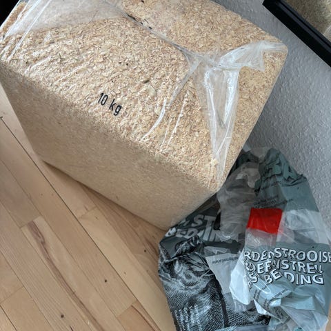 Resten er Spåner, halm og boxo comfort samlet for 100 kr