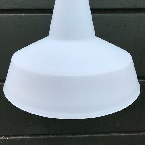 Super flot designerlampe med fantastisk lys, som kan dimmes fra hyggelys til meget stærkt lys. Materialet er mælkeglas med rustfrit stål, og lampen ser ud som ny. Ingen Mobile Pay, kun kontant ved afhentning.