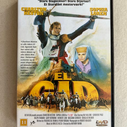 El Cid DVD Film. Klassisk historisk drama om Rodrigo de Bivar, også kendt som El Cid, en spansk ridder og nationalhelt. Filmen udforsker hans liv og bedrifter i det 11. århundrede. DVD'en indeholder to diske med ekstra materiale og interviews.