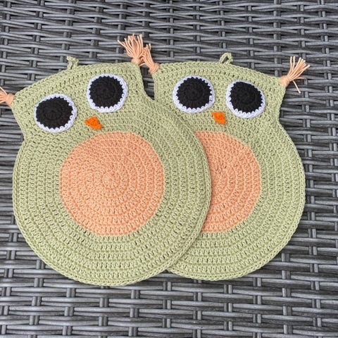 Håndstrikket Ugle Grydelapper