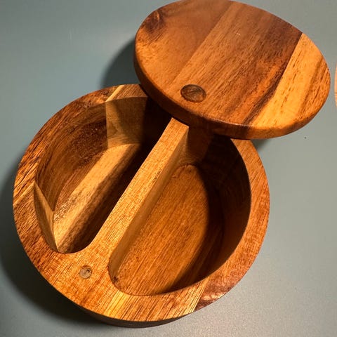 Trææske / smykkeskrin, Menu, Super fin stor rund træ æske med låg. Låget kan løftes helt af. Personligt har jeg brugt den til smykker, men kan bruges til mange andre ting.