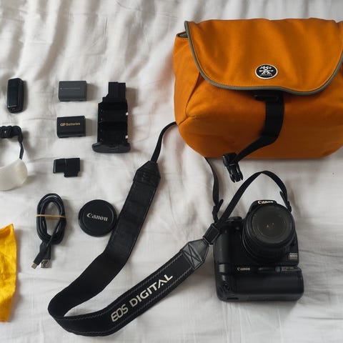 UDLEJES - Canon 400D SLR including 18-55mm lens, SD card, 2x batteries