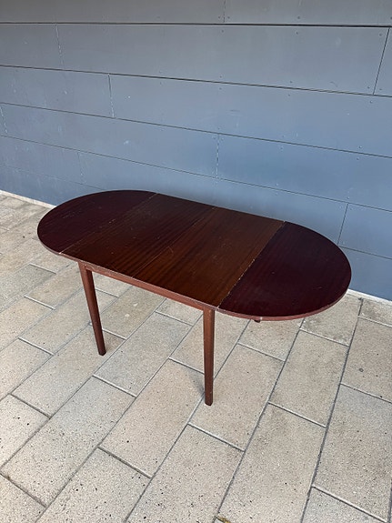 Super praktisk spisebord i mahogni med 2 klap plader + 2 tillægsplader.