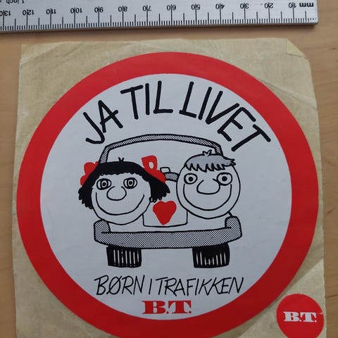 Stort klistermærke (15 x 18cm) med Børnehjælpsdagens store tombola fra 80'erne.
