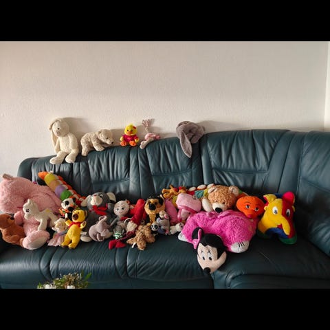 En sæk med bamser, som nye.