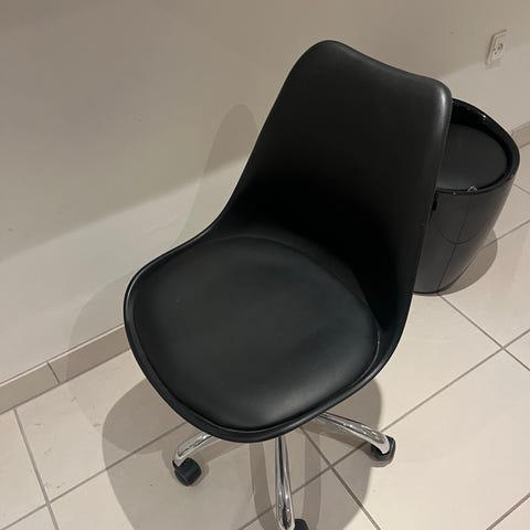 Fin kontorstol, det ene armlæn er dog løst. Det kan tages af, men ikke sættes fast.