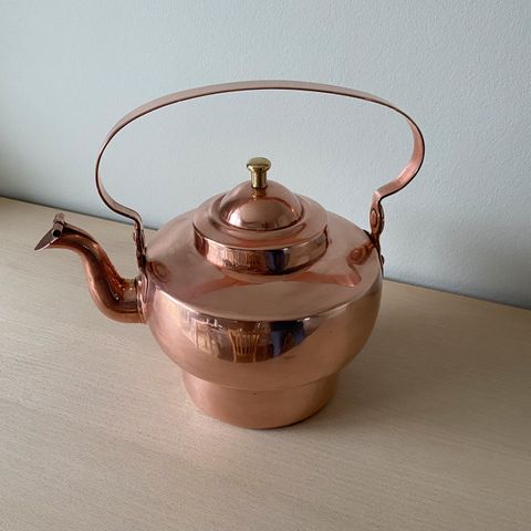 Kobbervand kande, RETRO, hammerslået kobber med messing tud og håndtag. Mid century. 19 cm høj . Patina