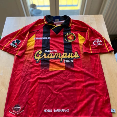 Trøjen er original vintage Sanfrecce Hiroshima hjemmebanetrøje fra 1993.