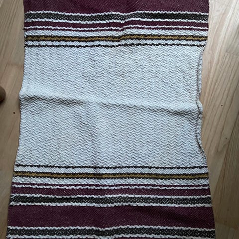 Jeg vil gætte på tæppet er fra 80’erne. Men det er i fin stand og smukt farvet mønster der ændrer sig på hver side.