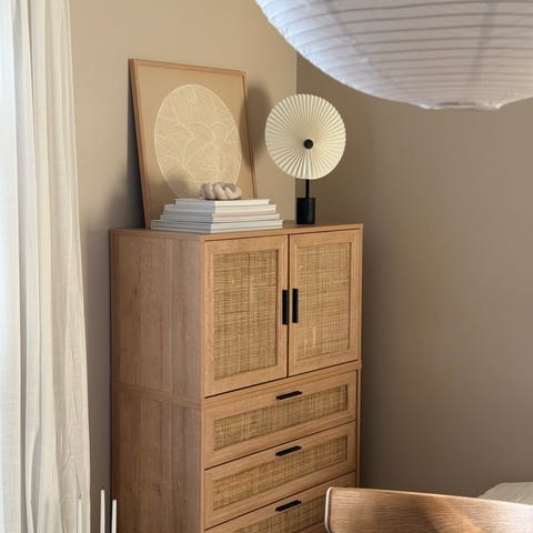 FK Frandsen, NATURA, skab i olieret valnød m/ hvide glaslåger.