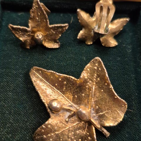 Flora Danica, forgyldte blad øreclips.