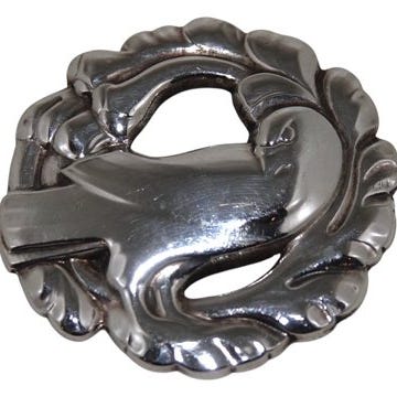 Georg Jensen Mørk rund broche med fugl fra 1944-1950