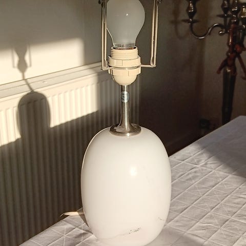 Holmegaard lille kugle Sakura bordlampe i opalglas.