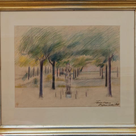 Heinrich Nielsen, oliemaleri. Grønt landskab med ænder muligvis fra Frederiksberg Have.