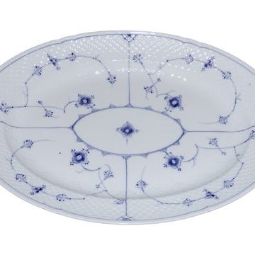 Bing & Grøndahl Blåmalet / Musselmalet, oval middagstallerken (eller kan bruges some stegefad) med blondekant.