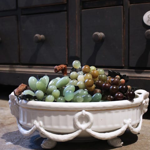 Royal Copenhagen Hvid Vifte, stor og sjælden jardiniere på fire fødder og med to vædderhoveder på siderne.