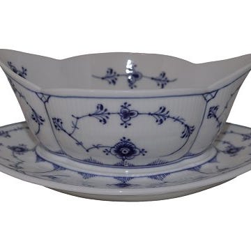 Royal Copenhagen Musselmalet Riflet, sovseterrin (sovseskål med låg).