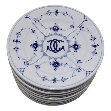 Musselmalet Riflet Hotelporcelæn Brødtallerken med logo 1