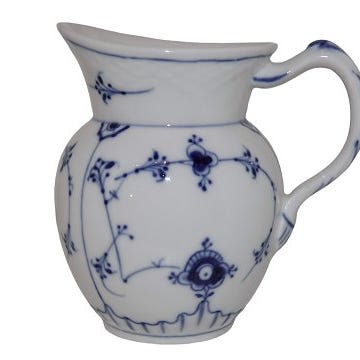 Blåmalet Riflet med guldkant Flødekande
