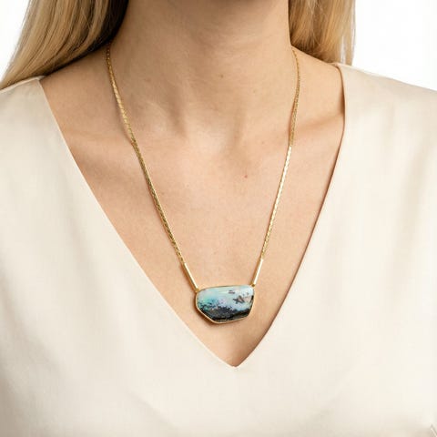 Sort snore halskæde med stort vedhæng i form af organiske guldklumper. Det ene klump er komplet besat med talrige champagnefarvede diamanter.