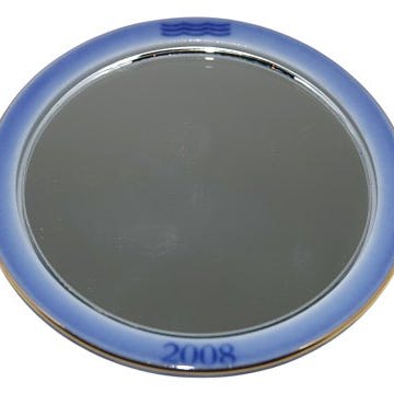 Royal Copenhagen Fajance Blå Celeste, stort rundt vægspejl.
