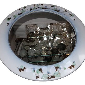 Royal Copenhagen Fajance Brun Celeste, stort rundt vægspejl.