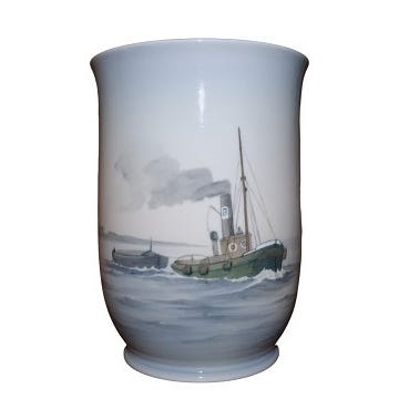 Bing & Grøndahl vase med sejlbåd. Vasen er dekoreret hele vejen rundt.