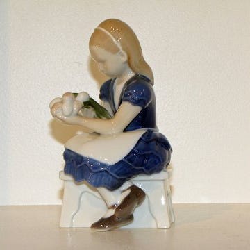 Bing & Grøndahl figur Pige med hvid bamse og blomterbuket