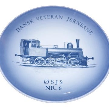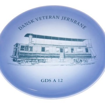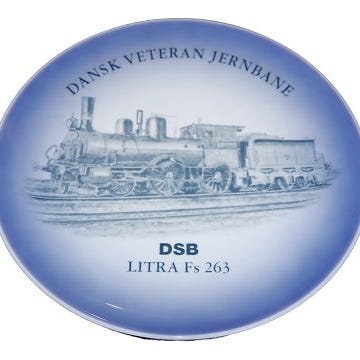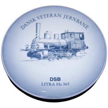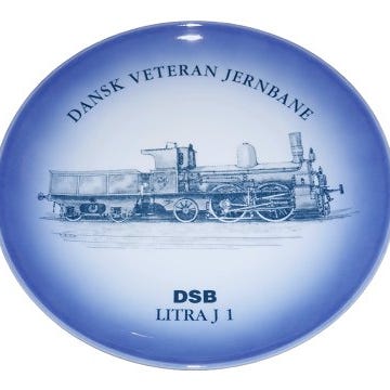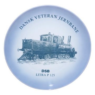 Midtgaard Art Wares togplatte, Dansk Veteranplatte No. 23 med DSB tog. Starten af serien blev lavet hos Bing & Grøndahl.