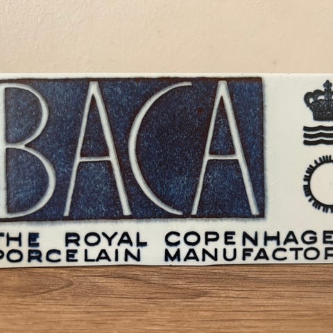 Royal Copenhagen skilt med Prinsesse Margrethe og Prins Henrik.