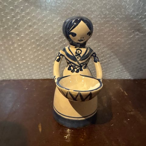 Lars Syberg keramik, blå figur til salt i karret og peber i toppen.