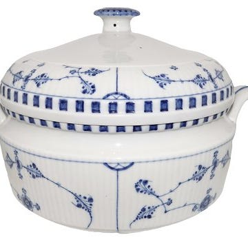 Royal Copenhagen Musselmalet Halvblonde, oval suppeterrin.