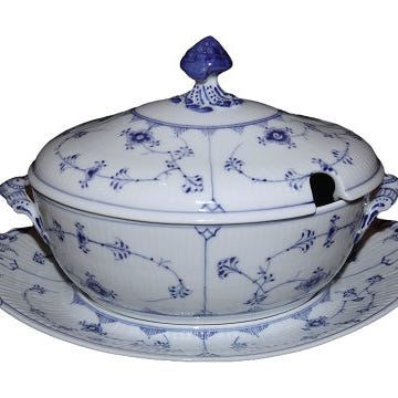 Musselmalet Halvblonde Oval suppeterrin