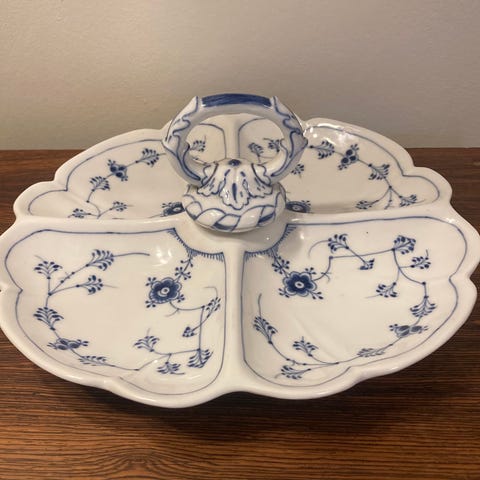 Royal Copenhagen Musselmalet Riflet, asiet til cabaretfad.