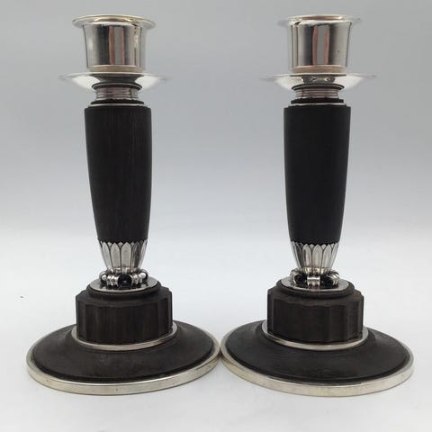 Georg Jensen sterling sølv, par lysestager designet af Harald Nielsen.