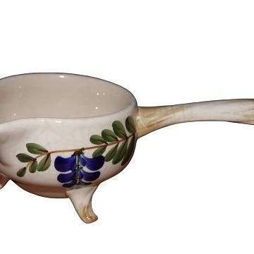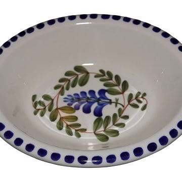 Der er en gammel grim reparation på lågknoppen samt en lille, reparation på selve bundkanten - se fotos - ellers fin stand.
