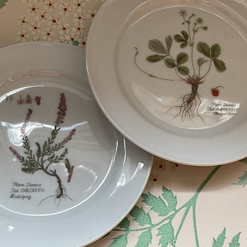 Porcelæn, Tallerkner, Faxe Depotet, Tallerkner med blomstermotiver fra Faxe Depotet. I fin og perfekt stand.