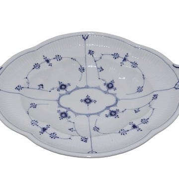 Royal Copenhagen Musselmalet Riflet med guldkant, sjælden lille brødbakke.