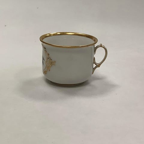 Royal Copenhagen Antik kaffekop med landskab og blomster