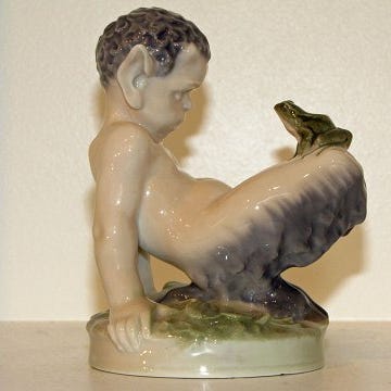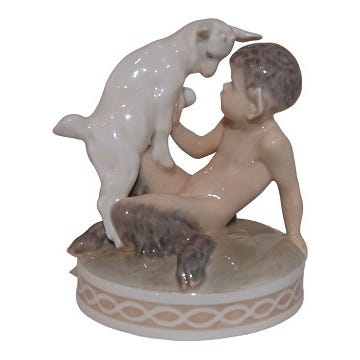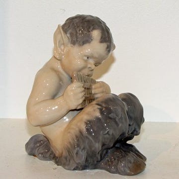 Sjælden Royal Copenhagen figur, pan (faun) med pige.