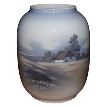 Lyngby porcelæn, vase med dansk mølle og bondegård.