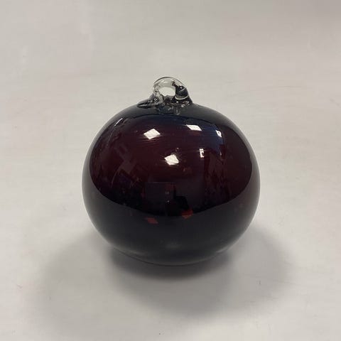 Kastrup Holmegaard gråblå kugle med øksen til ophæng eller til at komme i toppen af en vase som en prop.