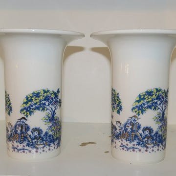 Bjørn Wiinblad Lille oval vase med dame og fugle