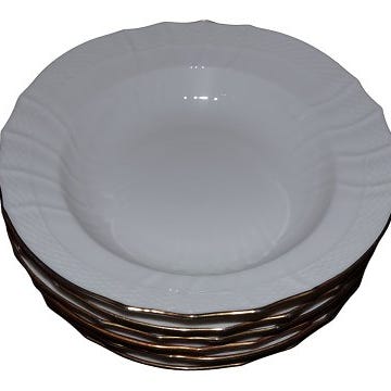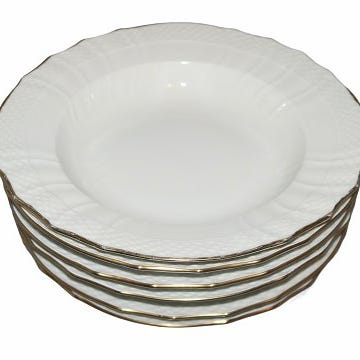 Royal Copenhagen Sirius - Hvid Svejfet med guldkant, rundt lågfad.