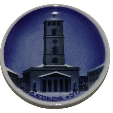 Aluminia miniature juleplatte, Glædelig Jul - Frederiksberg Kirke.