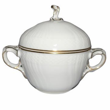 Royal Copenhagen Sirius - Hvid Svejfet med guldkant, stor rund kartoffelskål.