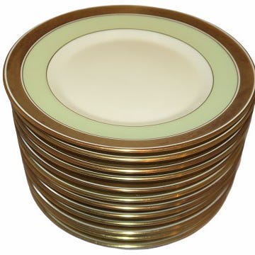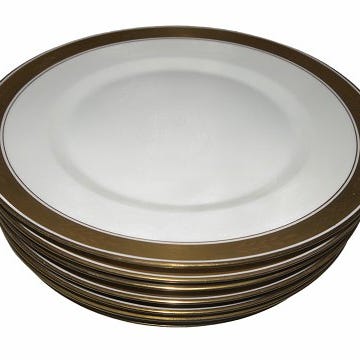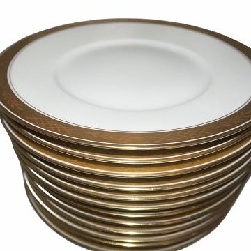 Royal Copenhagen Dekoration 607 - Hvidt med guldkant på samme form som Dagmar stellet.