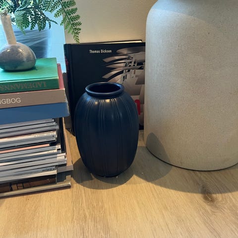 Ipsen keramik Mørkeblå vase med riller