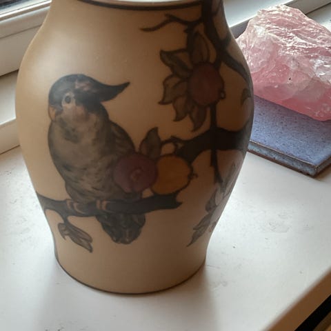 Hjorth keramik fra Bornholm, krukke med fugle og kaniner.